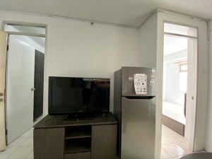 2 kamar tidur, 2 AC, 1 kamar mandi, kitchen set, bar table, tv, meja tv